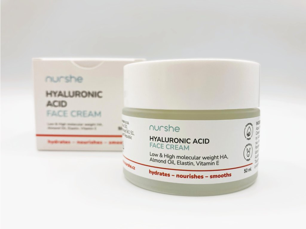 Hydratační a výživný krém kombinující efekt nízkomolekulární a vysokomolekulární kyseliny hyaluronové.